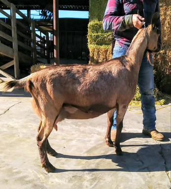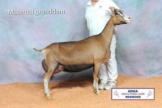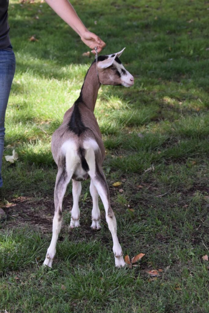 I would like to introduce a very special doe kid Kenzie’s WLM Astoria! Astoria combines the best from two very influential herds, Olentangy and Willow-Lane! Her dam CH Olentangy Rockstar Antebellum EEEE FS91 is one of the most influential does in my herd not to mention being from the strong “A” dam line known for their extreme mammary systems! Her sire Willow-Lane CA Magnito has been very influential at Dr. Dan Drake’s dairy with many gorgeous and stand out daughters who work hard in the parlor! His two daughters that have shown have really shown how great of a sire he is! Those two gorgeous does are CH Hoach’s WLM Nylah VEEE 92 and CH Hoach’s WLM Jamboree VEEE 91! Astoria who is a spitting image of her dam at this age is sure to follow in the hoofprints of her relatives!