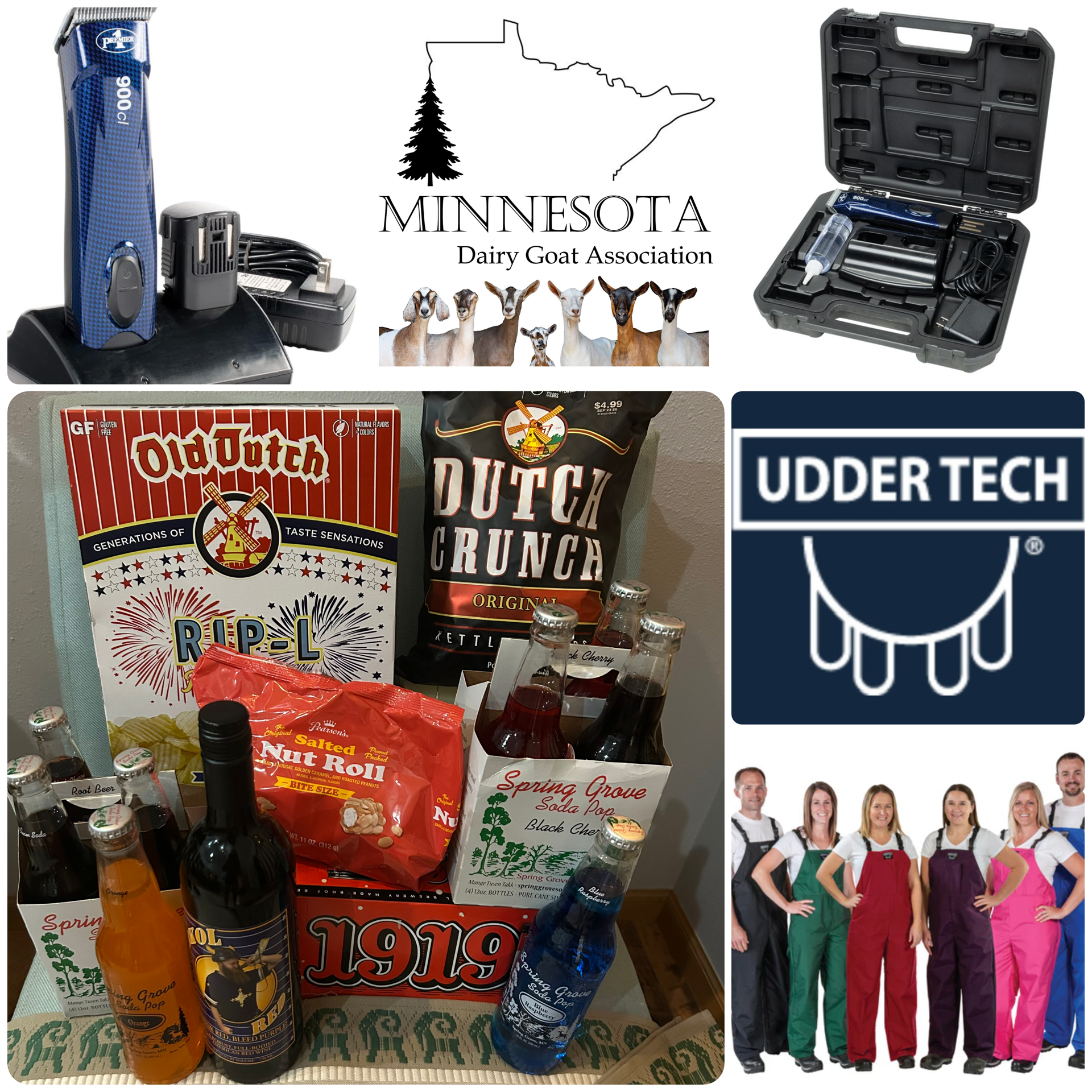 All the things you need to make the clipping experience go more smoothly! A Premiere One cordless clippers with a 3 1/2hr run time and a back up battery for non stop clipping, a $75 Udder Tech gift certificate to get those new bibs shipped to your door from Minnesota in the color and size of your dreams! One must stay hydrated and full while clipping so we have included Minnesota made food and drinks; a bottle of red wine to make your blood run purple, bottled Spring Grove Pop variety pack, 1919 Root Beer, Nut Rolls and Old Dutch chips. Don’t forget the imported fancy Swiss made goat table runner to set up all your supplies! Thank you to our donors: MDGA, Udder Tech, Liten Dal Farm, Northwind Toggenburgs and Valley of Goats! Basket valued at $400