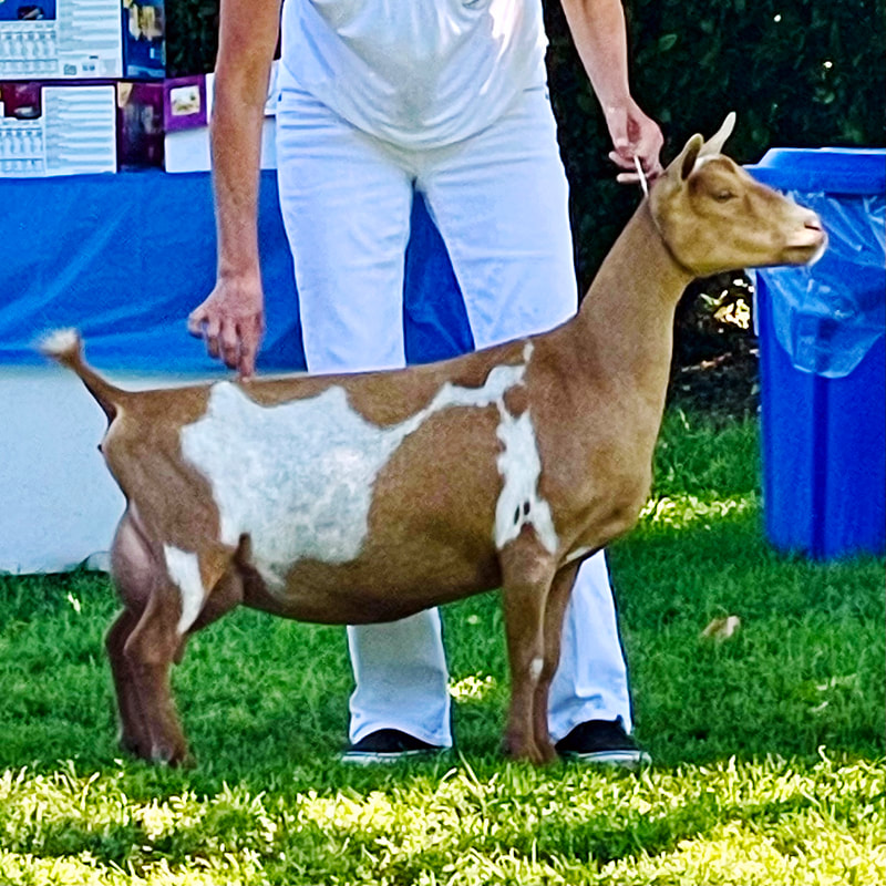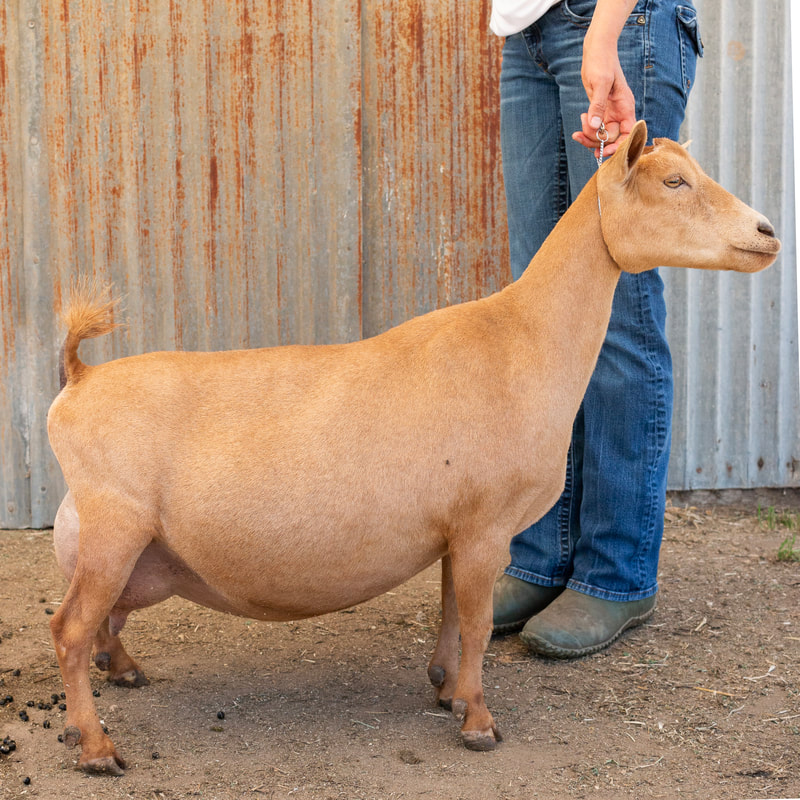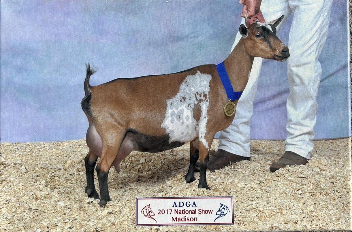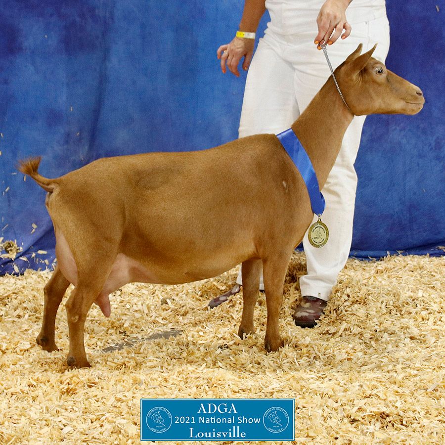Island Root’s paternal sister GCH Wolfivan One Love 8*M, (VEEE89 – 2yr) was the 1st place yearling at the 2023 ADGA National Show and became a finished Champion at just 2 years old.