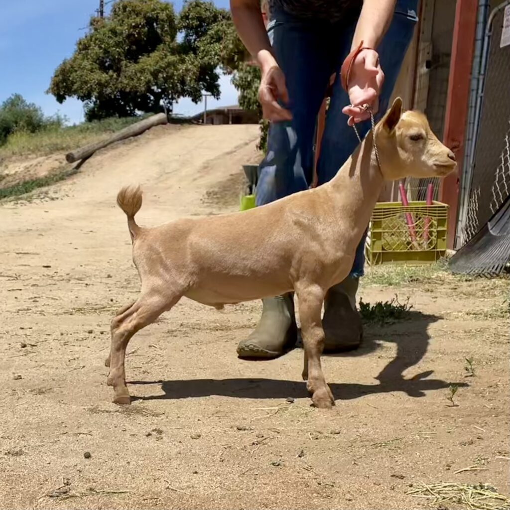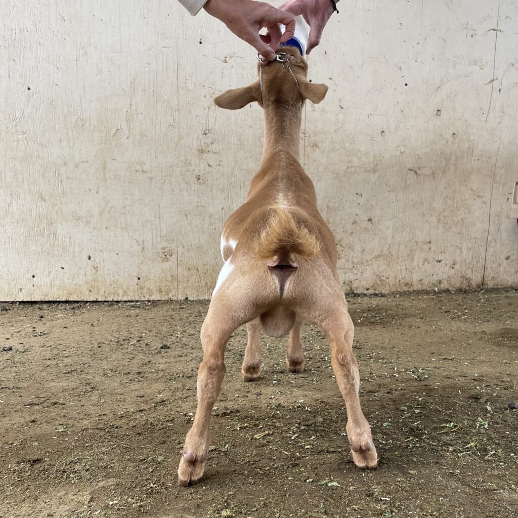 Island Root is a full sibling to GCHWolfivan Valerian Root 4*M, (VVEE89 – 2yr), a beautiful finished champion, further proving the strength and reliability of this genetic cross. Valerian Root has had great National Show success, placing 2nd as a 2 YR old at the 2024 ADGA National Show, 2nd as a yearling milker at the 2023 ADGA National Show and 3rd as a junior doe at the 2022 ADGA National show.
