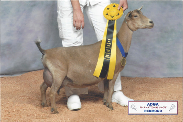 Island Root’s paternal sister GCH Wolfivan One Love 8*M, (VEEE89 – 2yr) was the 1st place yearling at the 2023 ADGA National Show and became a finished Champion at just 2 years old.